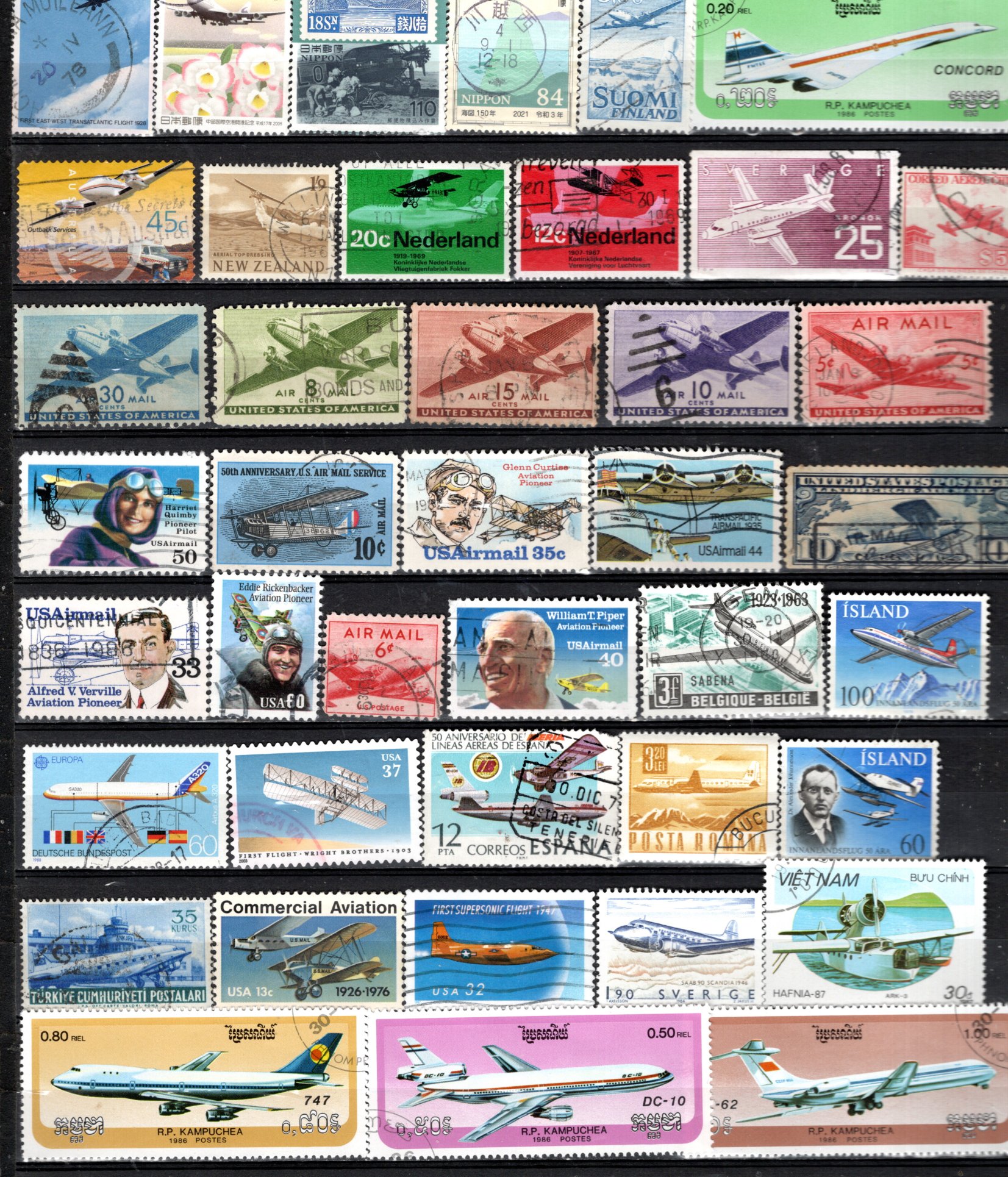 AVIATION rès bel ensemble de timbres oblitérés le scan affranchissement 1.39€ lot 31 01 10