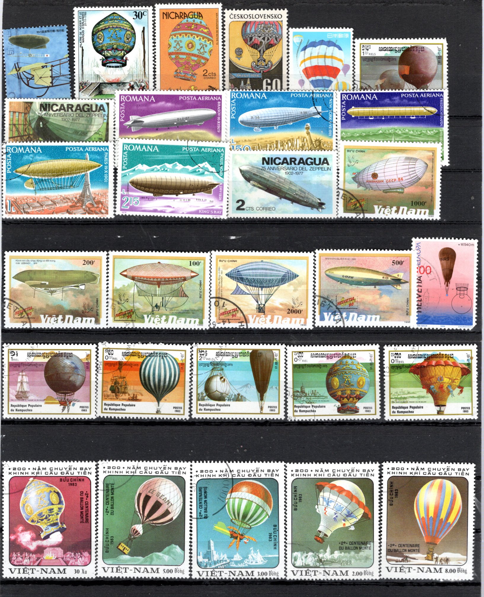 BALLONS très bel ensemble de timbres oblitérés le scan affranchissement 1.39€ lot 02 02 5