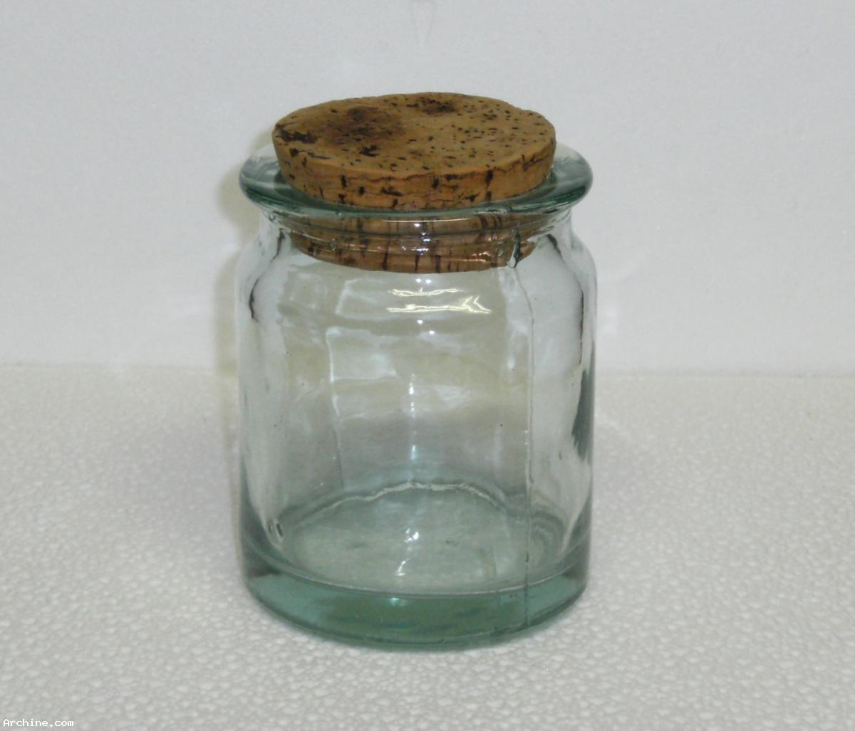 Bonbonnière / Pot / Bocal rond avec bouchon en liègedimensions : hauteur 14 cm environtrès bon état< groupez vos achats pour réduire les frais de port >
