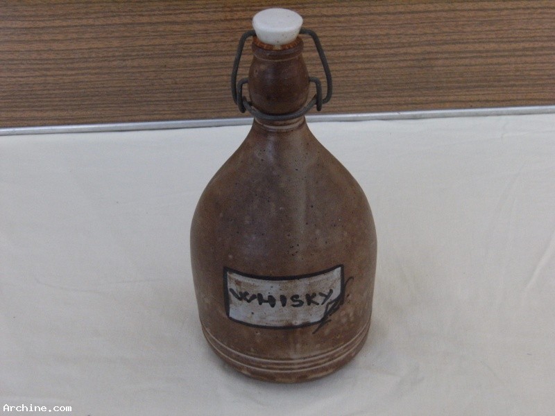 Bouteille de whisky en grès avec bouchon mécanique tête en porcelaine - hauteur 23 cmtrès bon état< groupez vos achats pour réduire les frais de port >