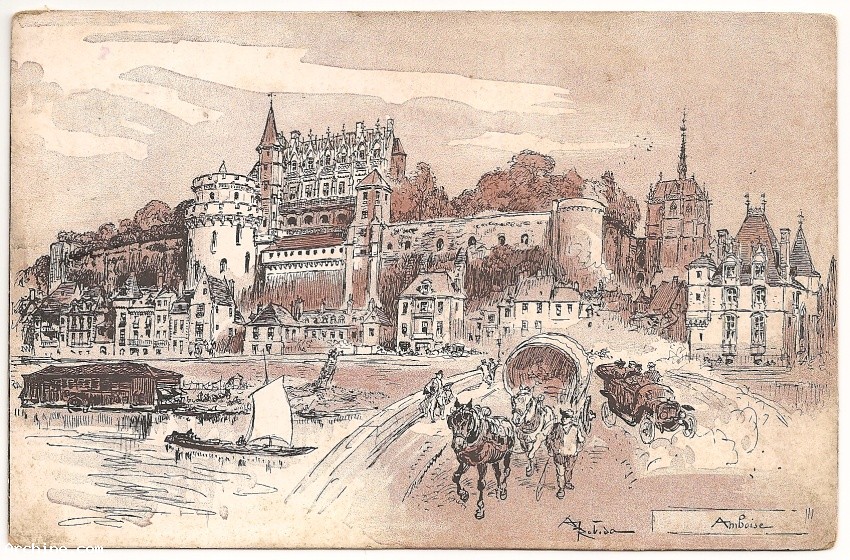 CPA dessin - Vue sur le château - Dessin de A. RotidaAmboise (Indre-et-Loire) - circulé le 3/11/1923 coins arrondis - jauni sur un bord au dosbon état < groupez vos achats pour réduire les frais de port >
