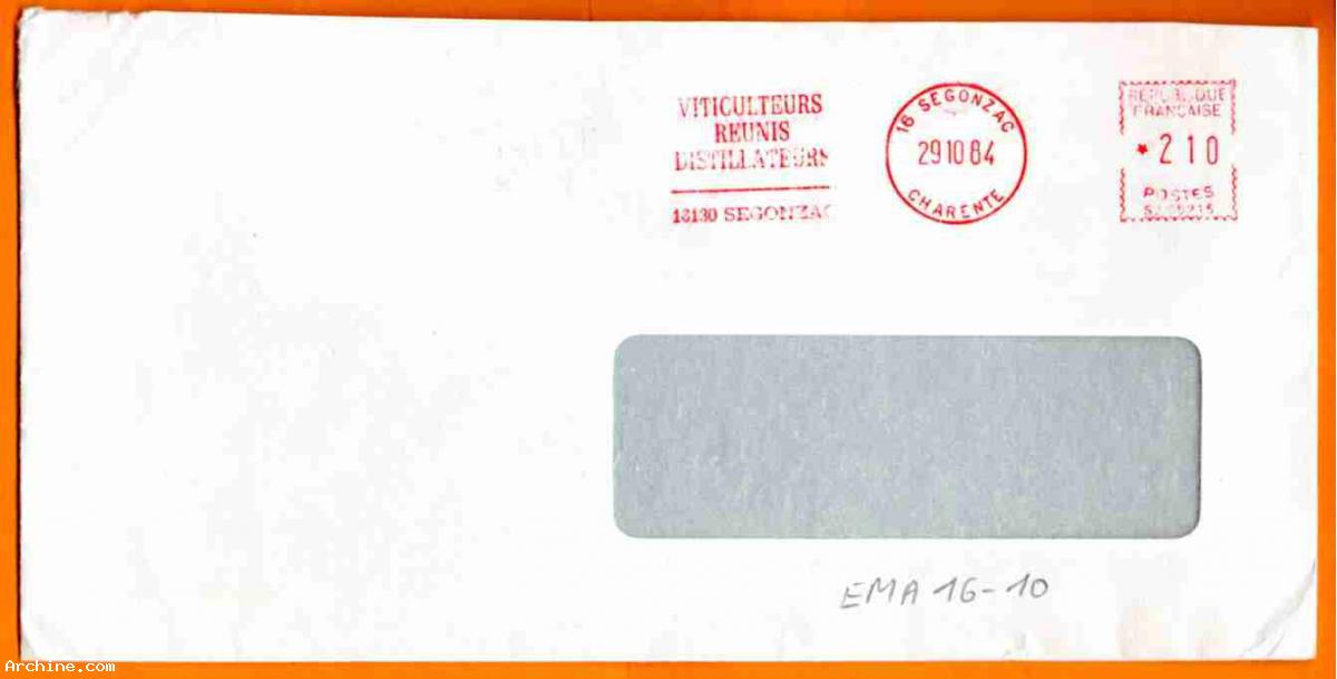 EMA TYPE FLAMME TEXTE : VITICULTEURS REUNIS DISTILLATEURS 16130 SEGONZAC