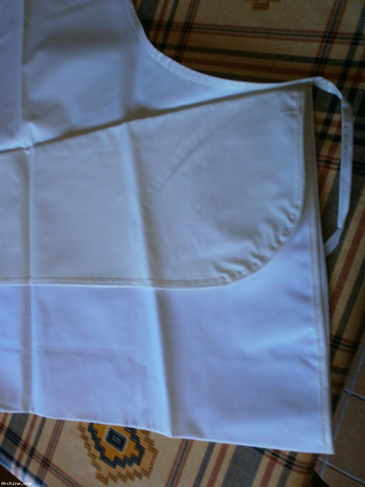 GRAND TABLIER BLANC EN TISSU PLASTIFIE ADULTE NEUF hauteur 110cm largeur 75cm
