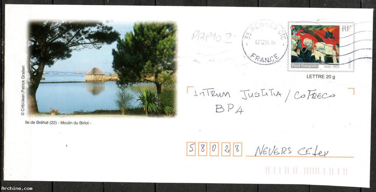 PAP Paul GAUGUIN (lettre 20g) ILLUSTREE Ile de BREAT Dept 22Dos illustré Montagne Saint Michel Dept 29ENVELOPPE FORMAT 22 x 11 cm INDEXEE 1 FOISDOS : Agrément N°809 Lot 42K/0305092 Logo LA POSTEMaref : PAP102