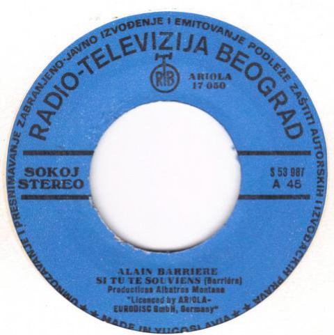 A - Si tu te souviens (Barrière) B - Nobody but you (Barrière)Barcodes and other identifiersRéf: RTB S 53987Etat: EX/MAnnée: 1976Matrix / Runout (Etched side A): S 53987 A 18477 I1500Matrix / Runout (Etched side B): S 53987 B 18477 I1500Rights Society: SOKOJ