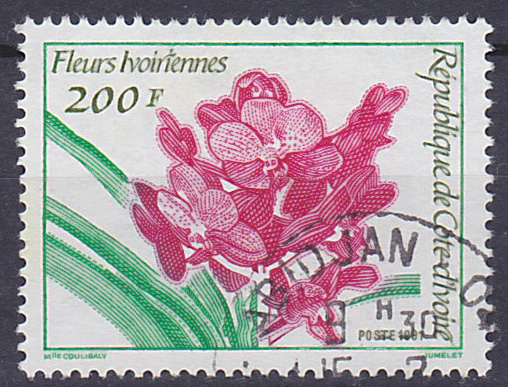 Timbre oblitéré n° 887 (Yvert) Côte d'Ivoire 1991 - Fleurs ivoiriennes